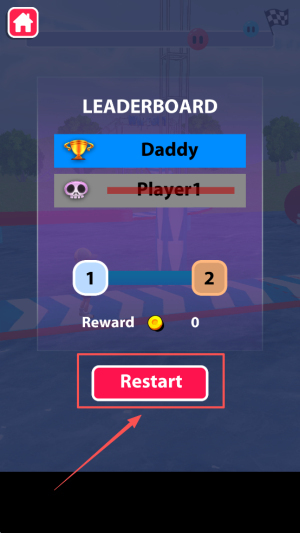 领取奖励的操作步骤如下:当屏幕上出现“LEADERBOARD”字样时,点击“Reward”按钮来获取排名对应的奖励,之后再点击“Restart”按钮继续进行挑战。