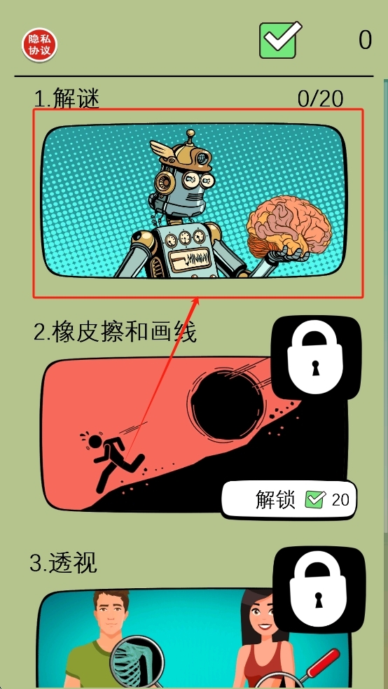 求助系统:卡关时可观看广告获得提示,前三次免费,提示会以漫画形式给出线索。
