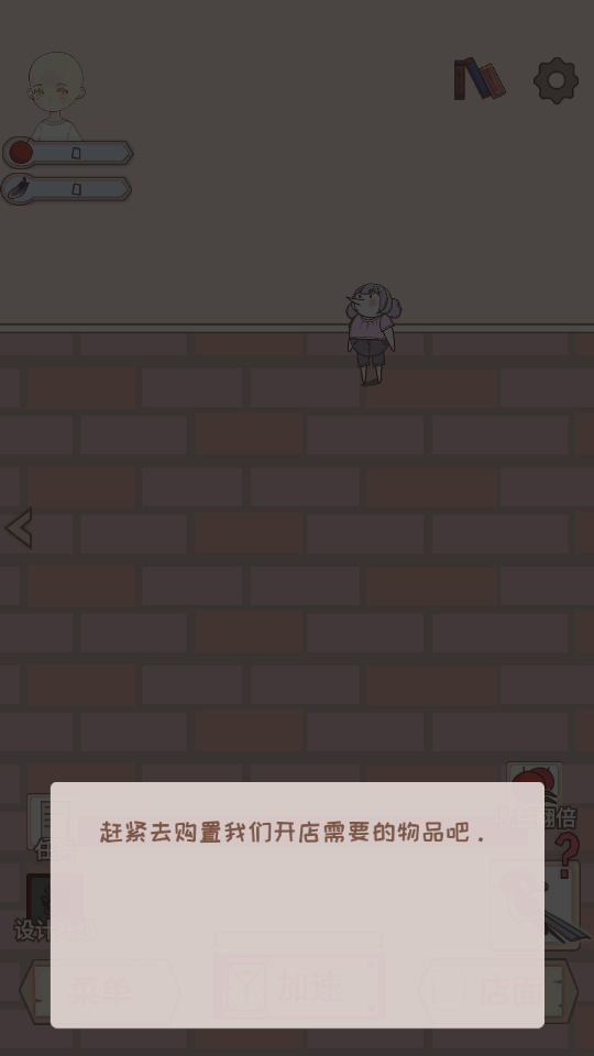 游戏开启后,按照提示“赶紧去购置我们开店需要的物品吧”,可以确定当下的首要任务是筹备开店所需的物资。