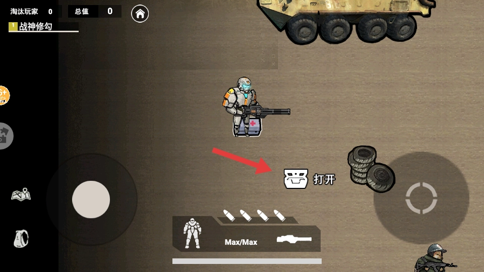 当看到【打开】按钮时,点击它来获取资源,同时留意周边环境收集装备,通过提升战力让自己在战场中更易生存。