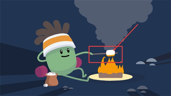 在露营关卡里,玩家要操控角色把【棉花糖】放到火堆上方进行烤制,过程中得控制好距离以防烤焦,这样才能推动关卡继续进行。