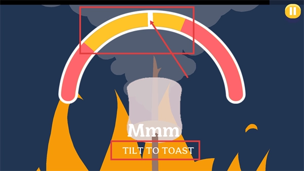 根据【TILT-TO-TOAST】提示倾斜设备,调节【棉花糖】的烤制进度,使进度条保持在合适区域,从而获得高分。