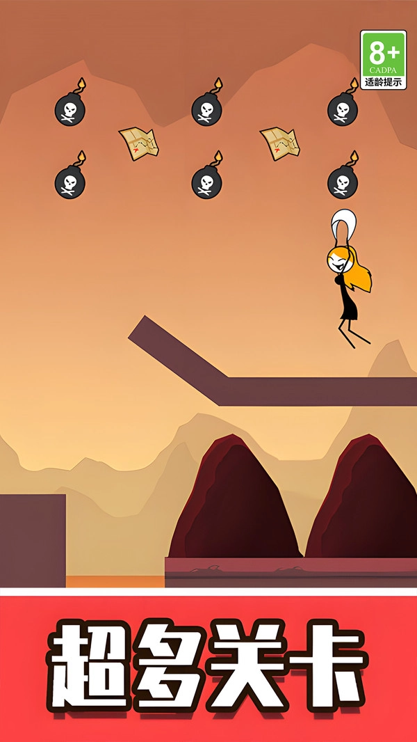 通过观察与推理,帮助身处困境的火柴人脱离险境。每个关卡都设置了别具一格的谜题,涵盖物理互动、机关操控、逻辑推理等多种挑战形式。2、经典的火柴人题材,运用简约的手绘风格,结合诙谐有趣的剧情,使玩家在闯关过程中获得丰富的乐趣。