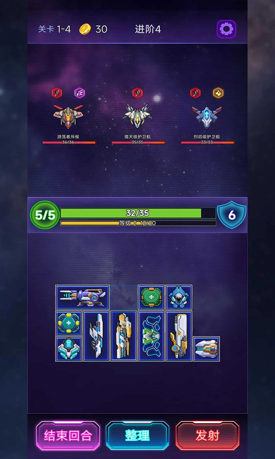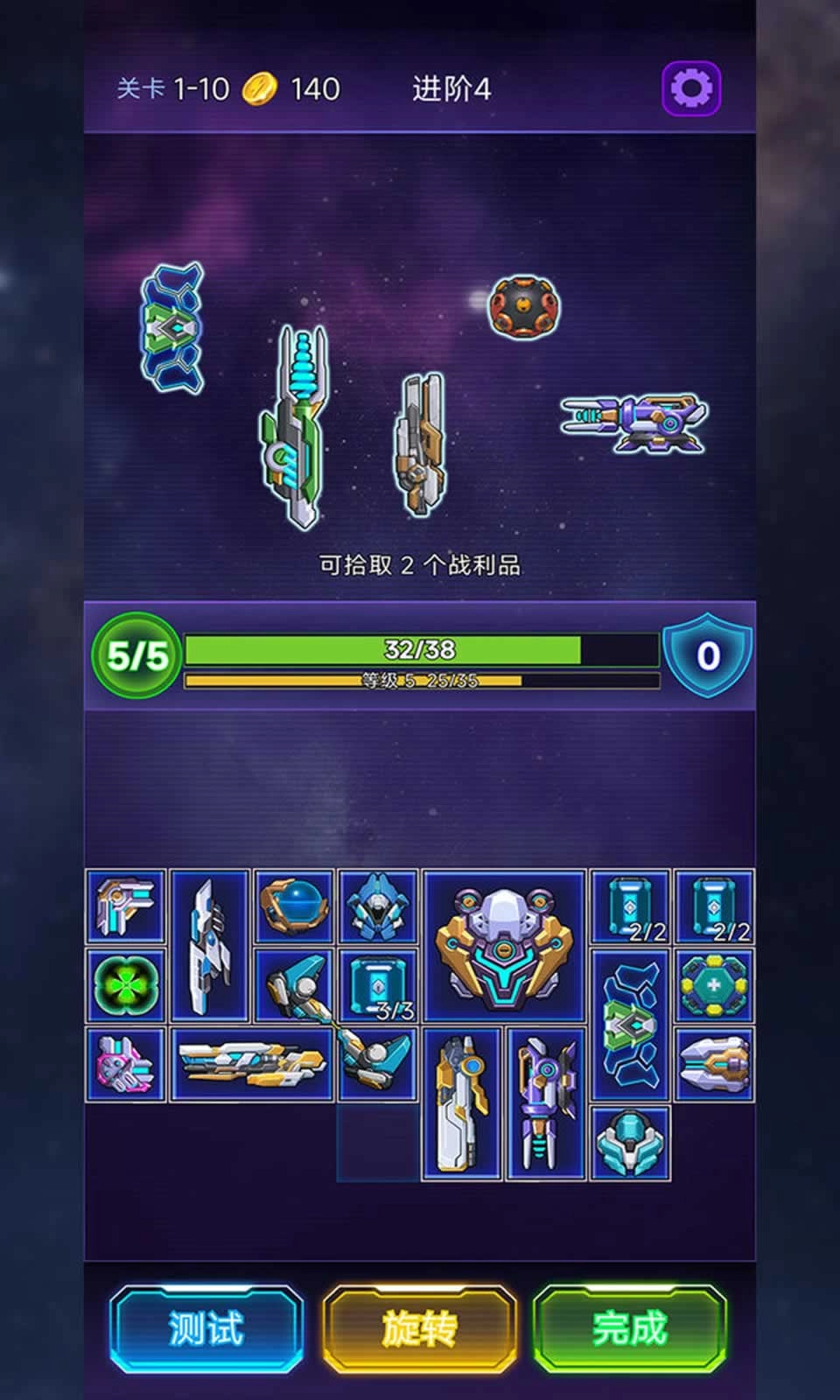 在5x5的有限仓库中合理摆放功能模块,连接能量节点构建最佳攻防体系。 预先设置好的能量路径将在战斗中自动运转,考验你的布局前瞻性。 每次跃迁都可能遭遇太空商队、外星遗迹或宇宙风暴,做出你的选择。