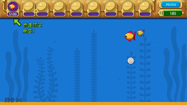 3、当有足够的金币可以购买鱼类,鱼会给你生产金币