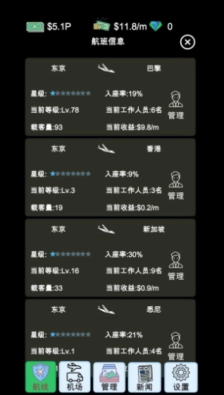 玩家需要在地图上租用停机坪,并开设航线连接不同的城市。航线的盈利情况会根据客流量、机票价格、飞行成本等因素而变化。