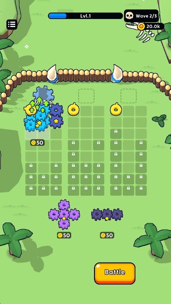 4、每一轮战斗结束后都能进行修整,相同的齿轮还可以通过合成来升级。