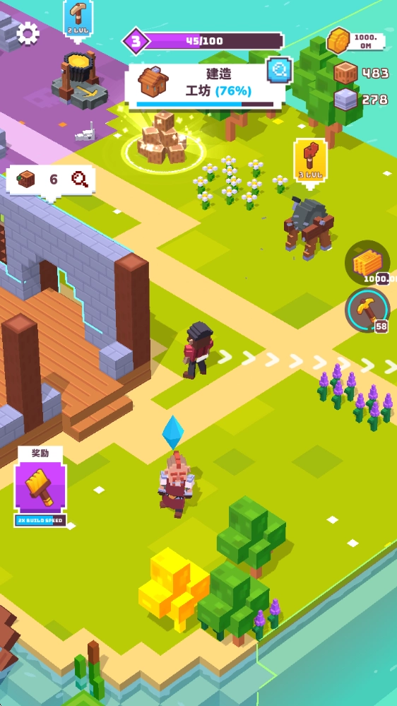 ,是一款像素方块风格的建造经营类。玩家们将会从零开始建造自己的家园,从徒手开采各种资源开始,慢慢打造升级各种工具,发现并挖掘更多必需资源,一步步的去将自己的家园打造完善!在建造过程中,我们的等级也会随着慢慢提升,也会为大家解锁更多全新的区域,通过探索来发现更多资源和奖励,助你的建筑工程一臂之力!