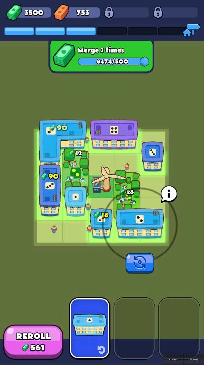 通过对建筑物的排列与合并进行合理规划,实现城市收入与资源利用的最大化。2、将相同建筑进行合并,提升它们的等级,以此解锁新的功能和收入来源。3、对城市资源加以管理,做出明智决策,推动城市持续繁荣发展。