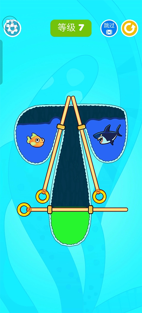 3、在这关我们需要先拔出下方的,在抽出鲨鱼这边,让酸水击杀鲨鱼。