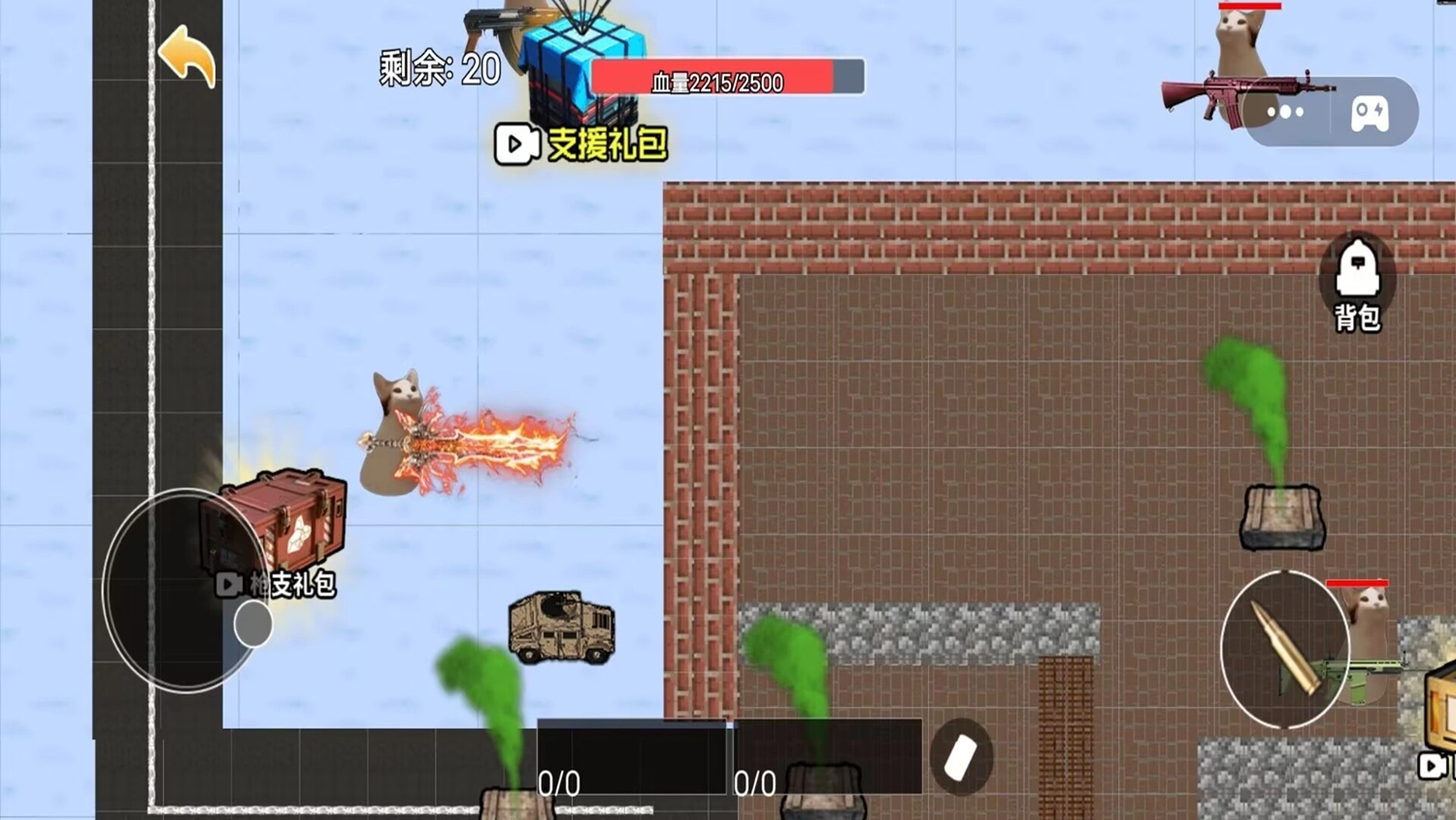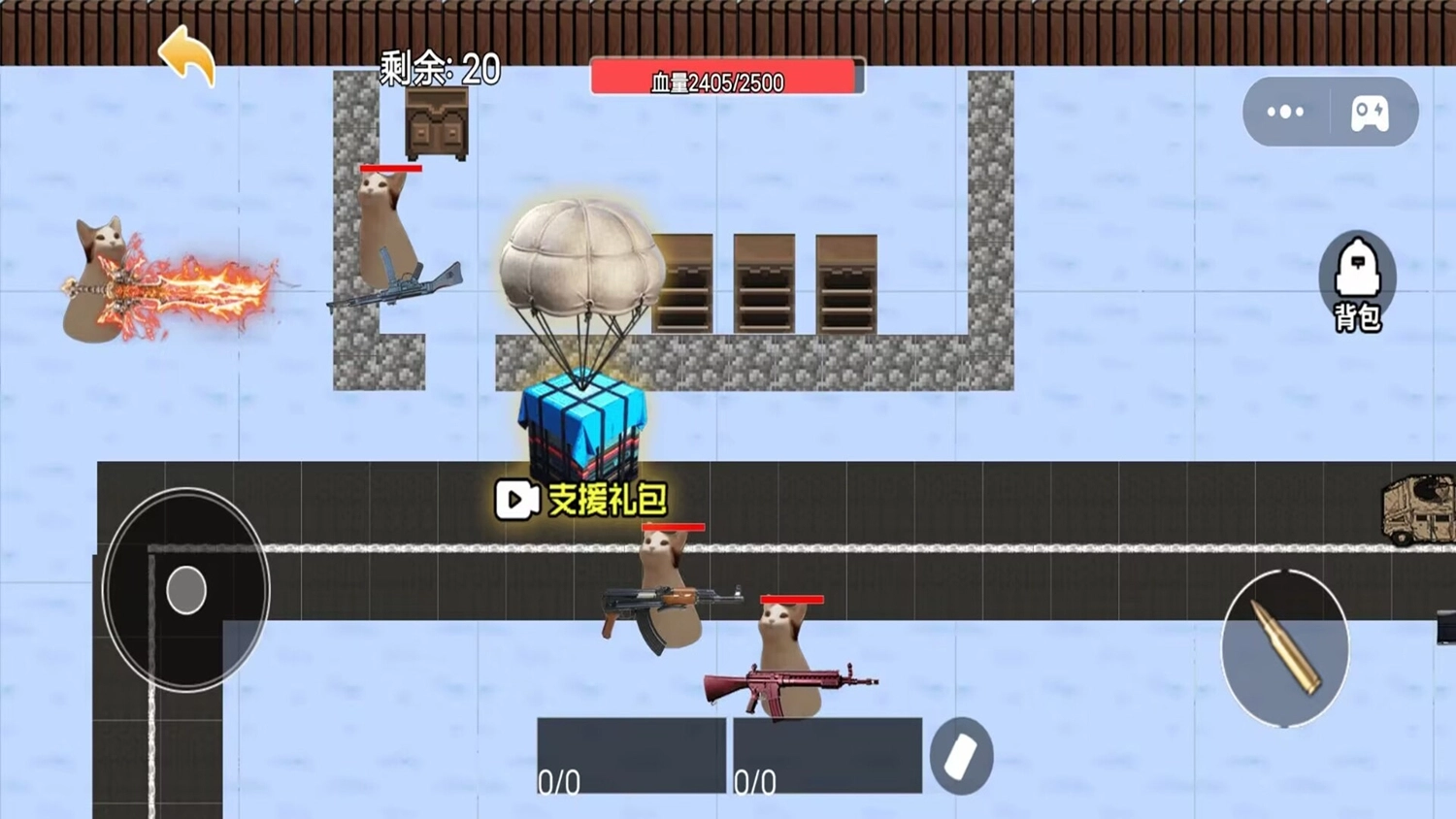 操控猫咪角色进行移动、瞄准与射击,借助各类武器的特性,战胜敌人,突破生存的极限。