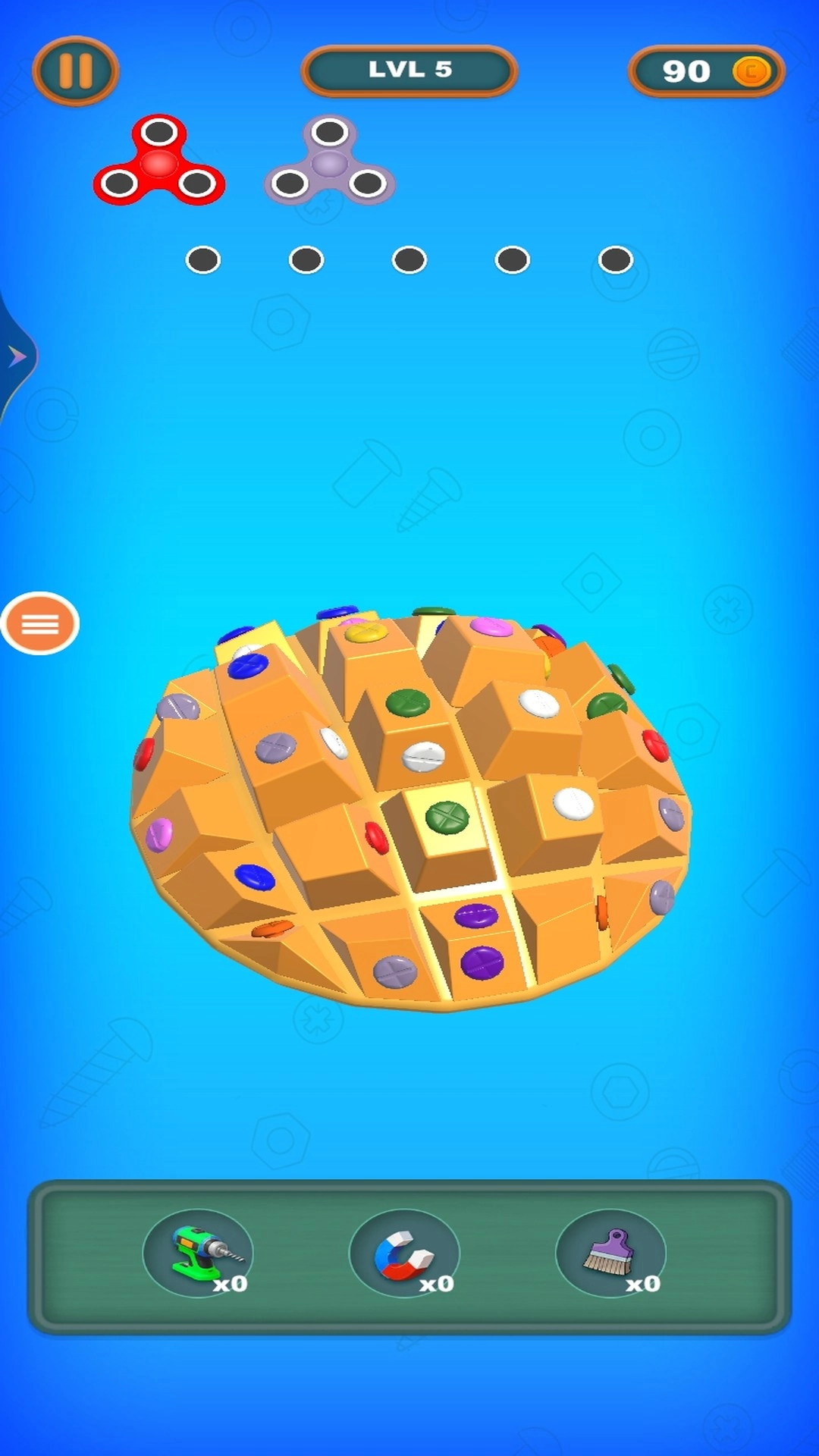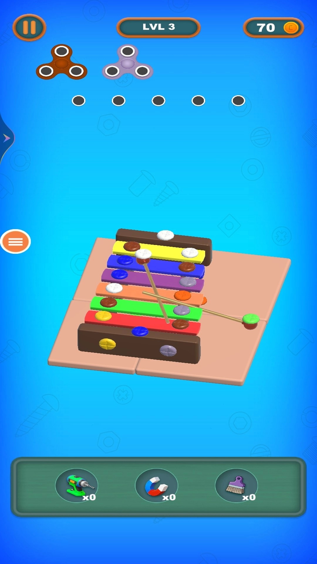 点击颜色相同的螺丝让它们脱落,借助连锁反应把重叠的障碍清除掉。