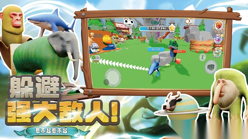 当遇到猴子、大象这类奇特生物时,你可以选择与之战斗或是进行互动。完成诸如“超级大象来袭”之类的任务后,就能解锁全新的内容。