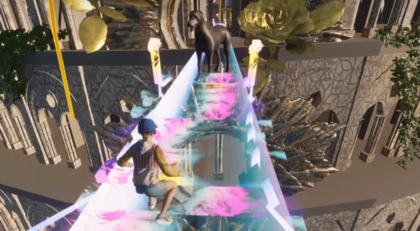 之后继续往前走,走到拱门出口处停下,前方就是那个假平台。