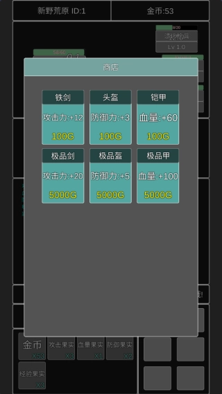 走进商店,用在战争中获得的钱财购置各类基础装备,像铁件、头盔、铠甲之类的物品。