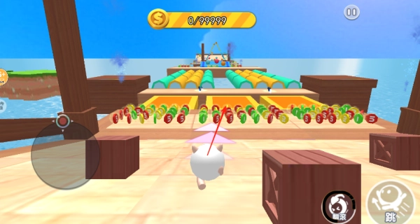 进入游戏后,操控你的角色向前移动,灵活地跳跃或奔跑,收集前方的糖豆。