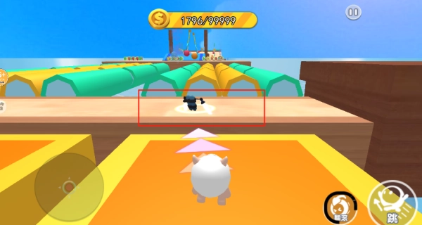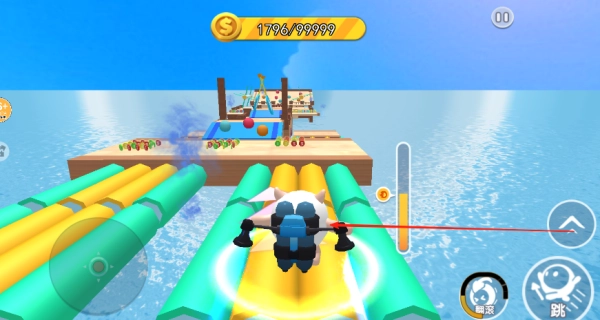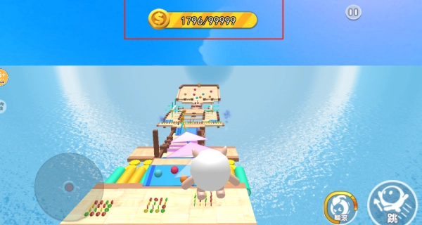 在场景里收集加速和护盾类道具,借助加速效果冲刺拾取糖豆,利用护盾来抵挡障碍带来的冲击。