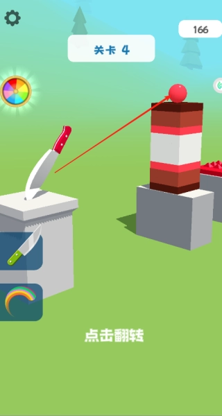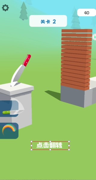 进入游戏并选择关卡后,点击屏幕即可让刀具翻转,通过跳跃的方式使其落到目标物体上以完成关卡挑战。