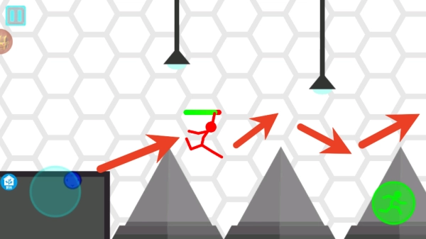 游戏左下角控制方向,右下角操作键为奔跑加速。