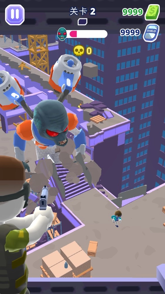 2、怪兽时不时会向你投掷各种物品,用你的武器打爆它!
