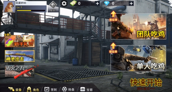 有两种模式可供选择,分别是团队吃鸡和单人吃鸡,你可以任选其一,之后领取新手礼包,就能开启作战之旅啦。