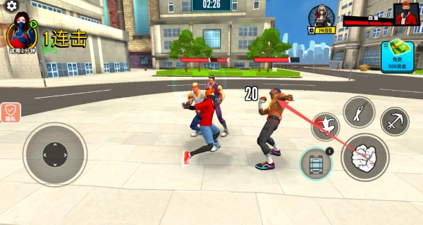 在游戏里开展近身搏斗,借助虚拟摇杆和技能按键,释放连续招式击退敌人,连击数越高战斗效果就越好,还能获得资金来增强角色的能力。