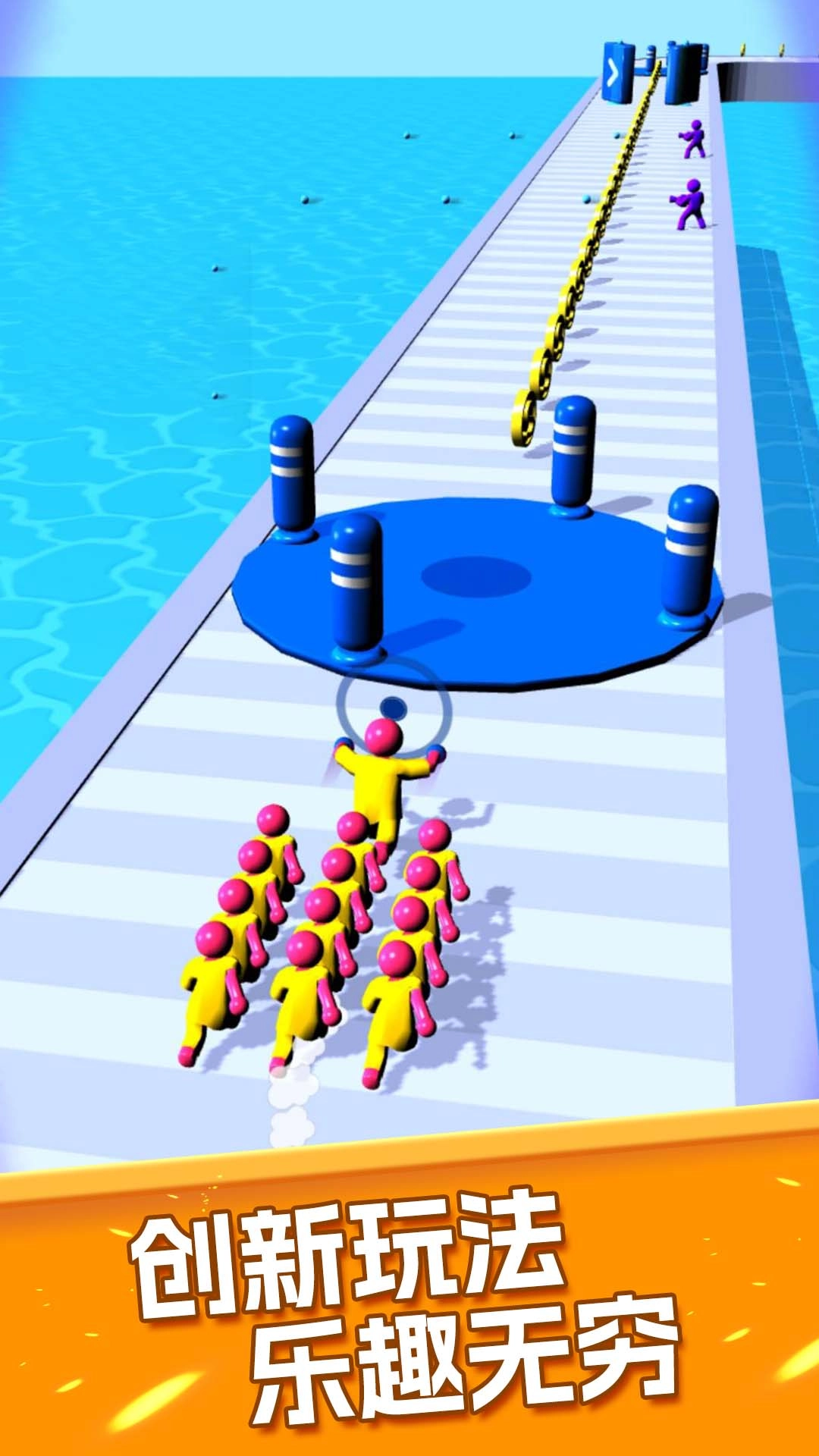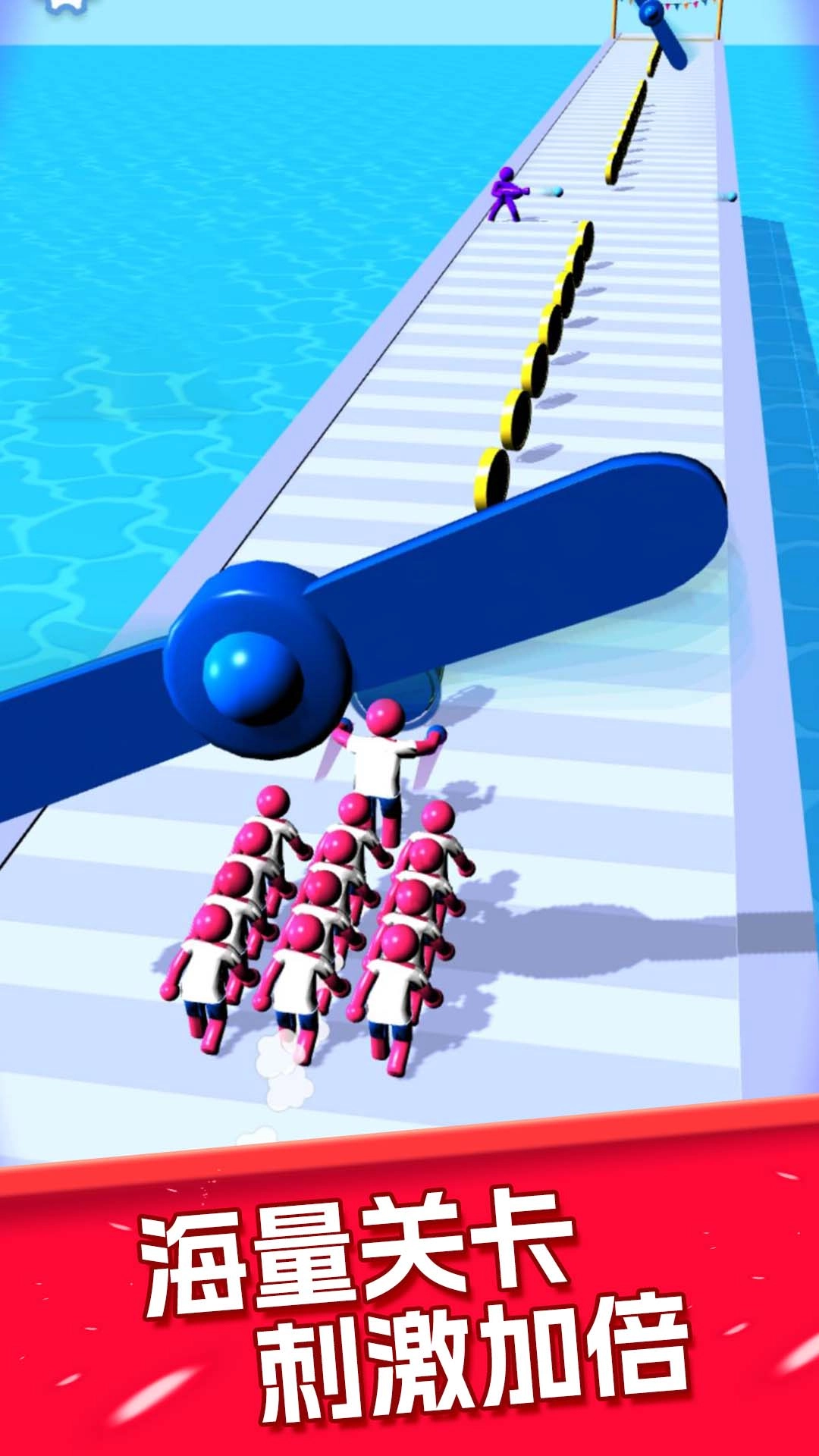 《军团向前冲》是一款融合了趣味奔跑与策略选择的合成游戏,玩家将操控小人在充满变化的赛道上展开跑酷挑战。随着奔跑进程,你的队伍会不断吸纳成员壮大规模,而途中需要做出合理选择——面对旋转扇叶、滚动石球等拦路障碍,得灵活滑动屏幕躲避;收集沿途金币可解锁超炫皮肤,使用冲刺道具更能让你一骑绝尘领先对手。每关都设有丰厚奖励,通关不仅能获得皮肤,还能积攒资源,助你从跑酷新手逐步成长为大神,冲过终点线的瞬间更能收获满满的成就感!