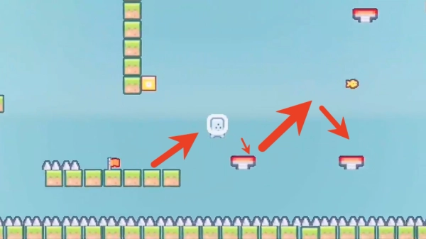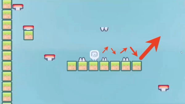 请留意保持向前奔跑的状态,脚下的台阶只要稍作停留就会消失,所以得快速且连续地跳跃移动,避免跌落下去。