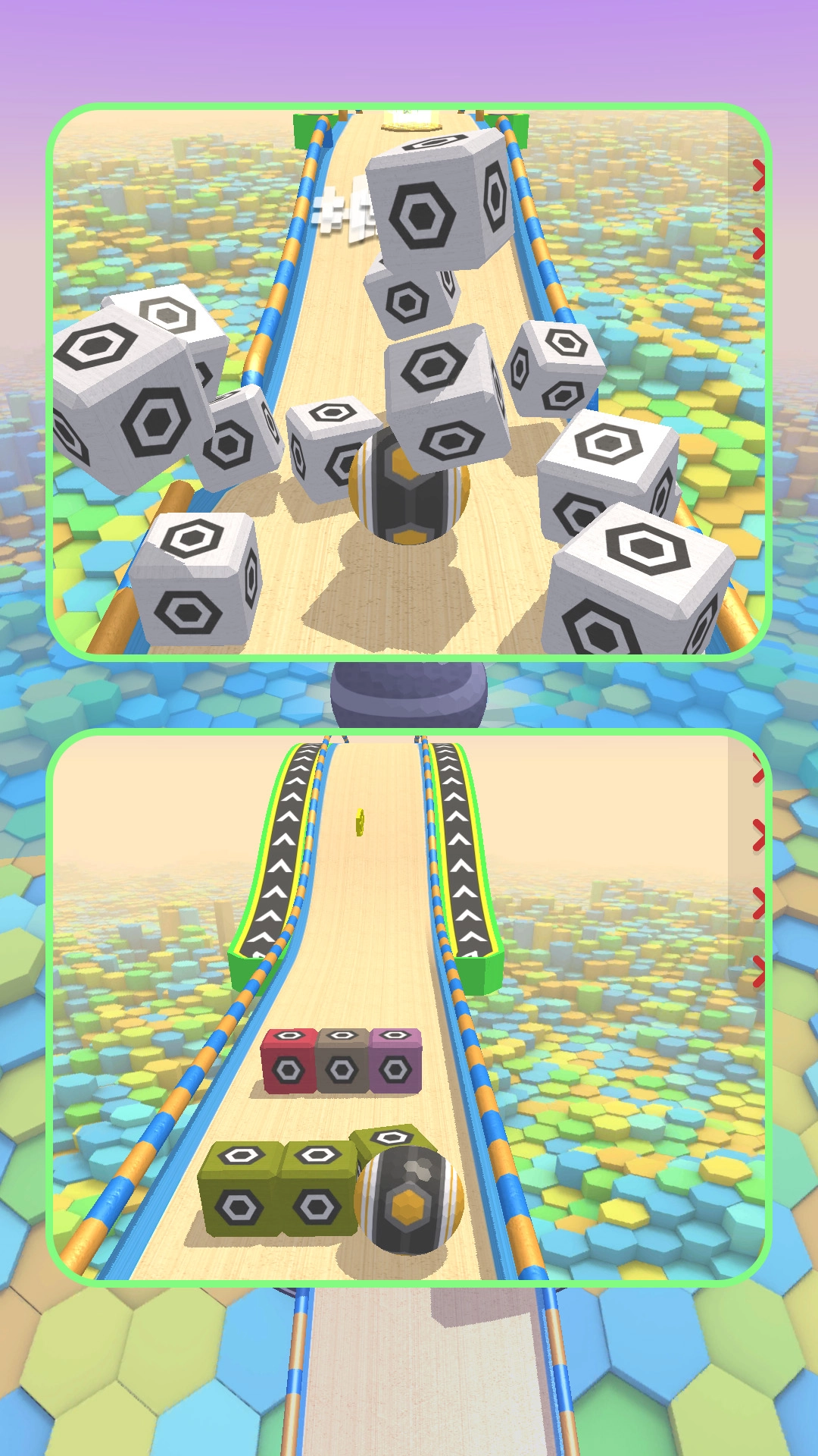 玩家能够和场景里的各类道具进行互动,使球球在一定时间内显著加快移动速度,迅速通过所有复杂的区域。