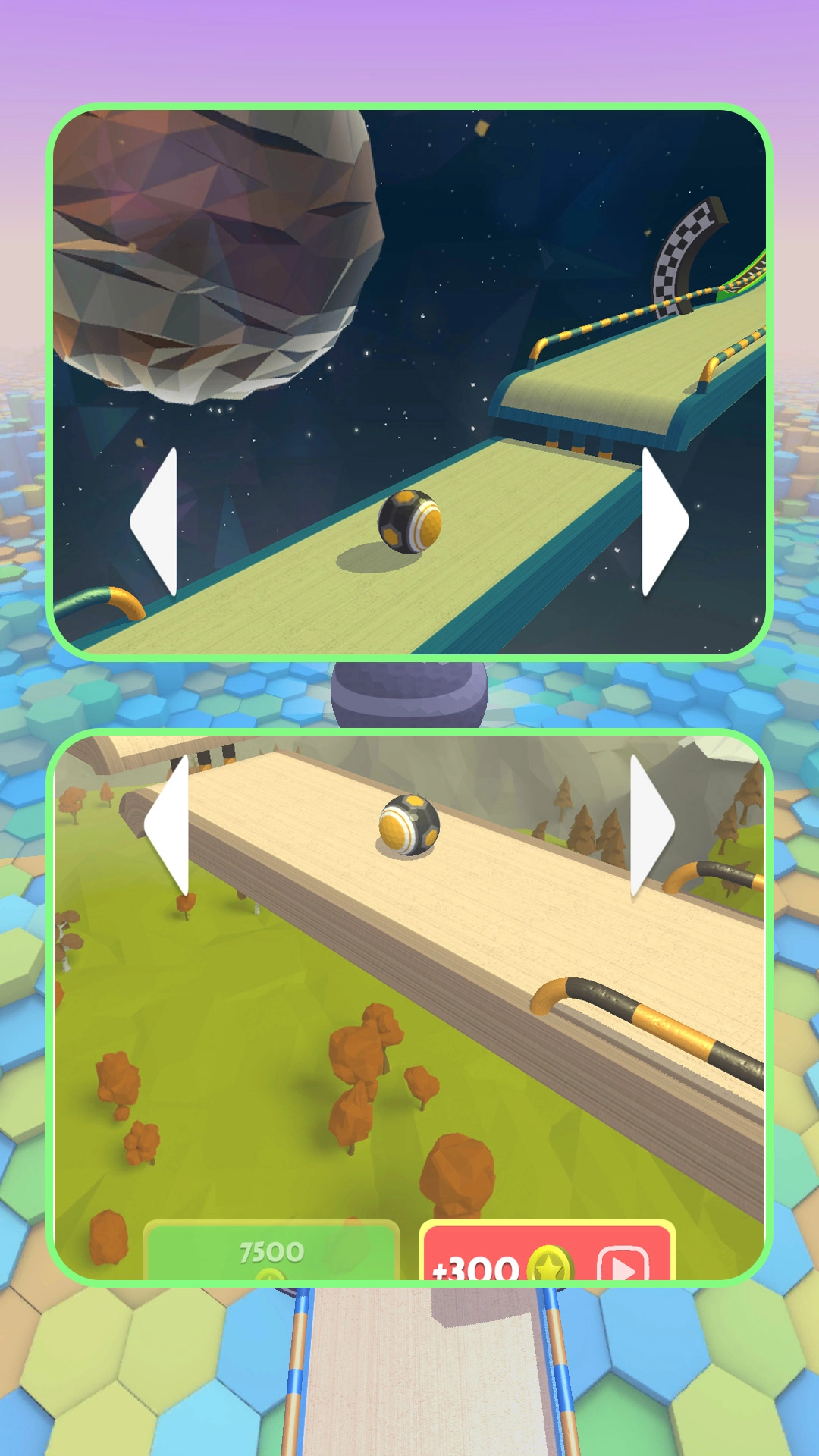 游戏里的小球种类十分多样,玩家能够尝试多样的跑酷模式,在各类场景里飞速奔跑,顺利到达终点。