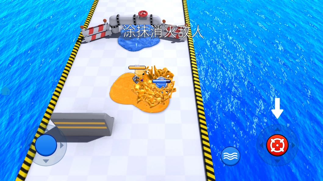 玩家操控喷射枪,在地面与墙面喷涂属于己方阵营的颜色,系统会实时统计双方的占领区域面积,当倒计时结束时,占据面积比例更高的那一方将赢得胜利。