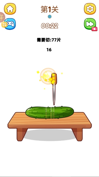 游戏里汇集了多种解压类小游戏,比如切黄瓜竞赛,要在系统设定的时间内完成指定的切片数量,得持续点击手机屏幕才行。