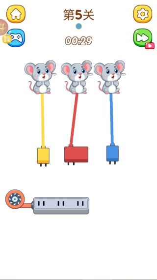再举个例子,给三只小老鼠充电时,由于电插板数量有限,玩家得依据老鼠们形状各异的插头来调整摆放方式,这样才能让三只老鼠都顺利用上电。