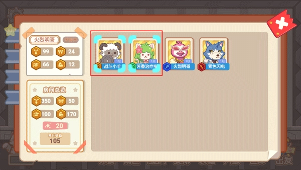 3、角色功能键:会将解锁后的动物角色展现在这里,每个角色的属性和战斗力都不相同,左下角的不同颜色表达不同的攻击属性。
