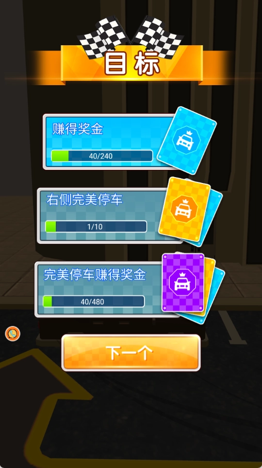 先查看目标任务,把赚奖金和停车的具体要求弄清楚,然后按照指引驾驶车辆,完成相应的挑战任务。