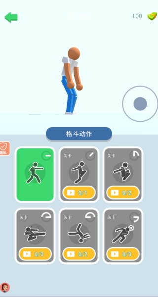 你需要操控橡皮人,借助虚拟按键来施展诸如出拳、踢击之类的格斗动作,和对手进行对战,只要击败对手,就能通过普通关卡。