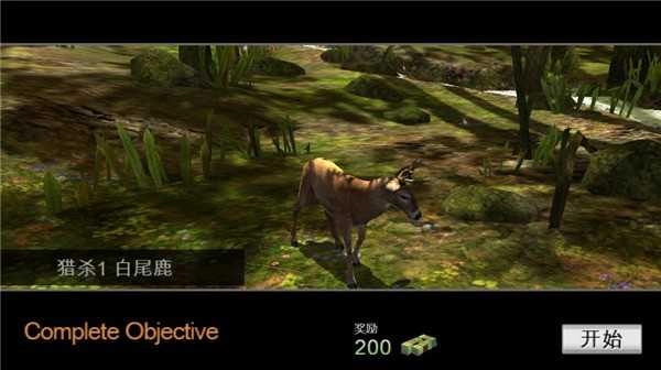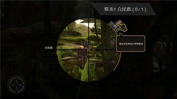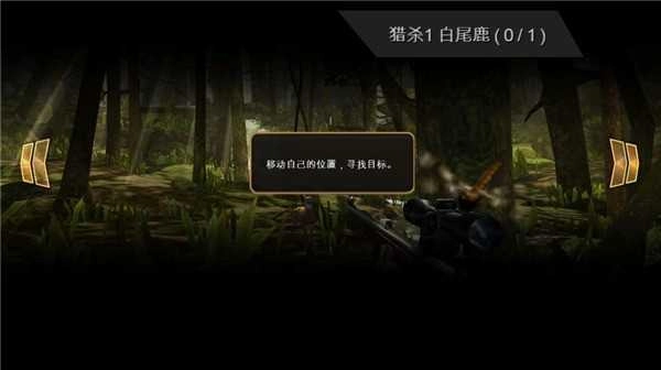 本阶段目标为精准捕获一只白尾鹿,系统自动锁定初始区域,但鹿只位置随机生成,需主动移动观察。