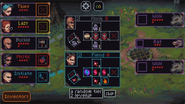 1、简单的回合制战斗允许你在每次战斗后升级你的英雄或获得道具。
