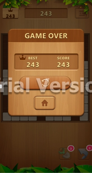 当所有格子被方块完全填满,且不存在任何能够消除的行或列时,挑战即宣告失败。这种情况下,玩家可以选择重新开启游戏,或是借助复活道具(若拥有)来接续挑战。