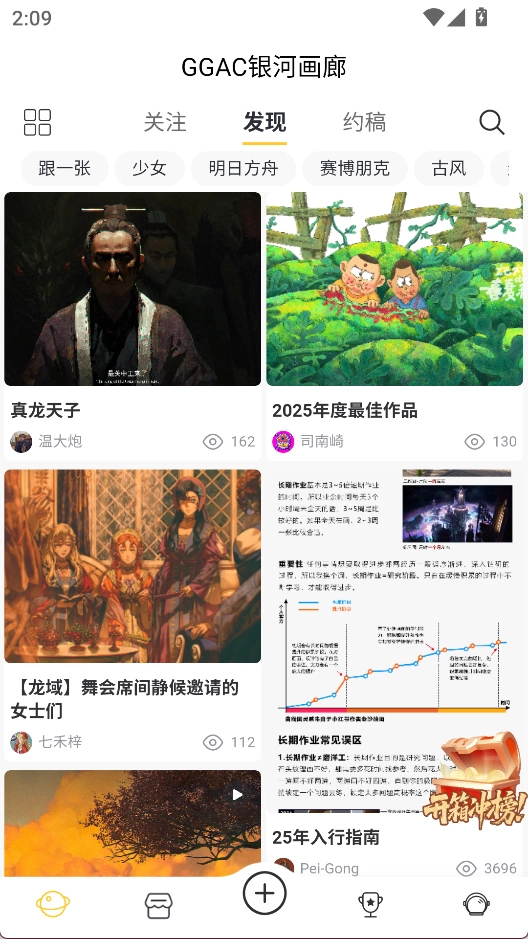 GGAC银河画廊是一款CG艺术作品分享平台,汇集了大量来自游戏、动漫、影视等视觉艺术方向的原创作品,为艺术创作者与爱好者搭建了一体化数字平台,在社区内可以参与讨论、发布作品,营造活跃的艺术社区氛围。