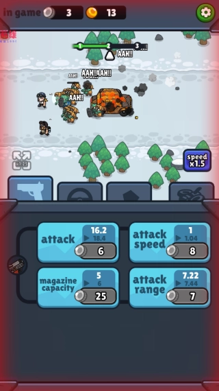 玩家能够通过消灭僵尸来获得资源,这些资源既可以用来提升战车的火力、射程、装填速度等各项属性,也能够解锁导弹、烈焰喷射器之类的特殊武器。