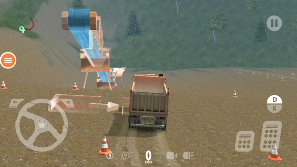 控制卡车方向需使用左侧的方向盘,而刹车与油门则通过左侧的按钮来操控。
