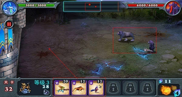 5、战斗策略。不要急于召唤兽王,待对手的兽王接近我方城堡时再应战。将战线控制在我方,有利于新兽王快速加入战斗,形成以多打少的局面,减少兽王的损伤。