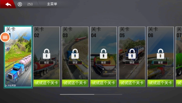 如下图所示,我选择了越野模式,进入后需要挑选挑战关卡和卡车型号。