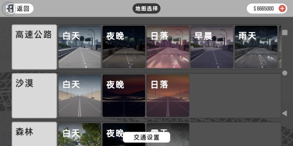 沉浸式场景设计:涵盖城市街道、山地弯道、沿海公路等不同类型的赛道,动态天气系统提升了挑战的层次感。