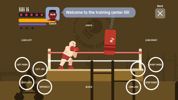 进入训练中心后,按照教练的指引,点击“LEFTJAB”之类的操作按钮,进行拳击技巧的练习。