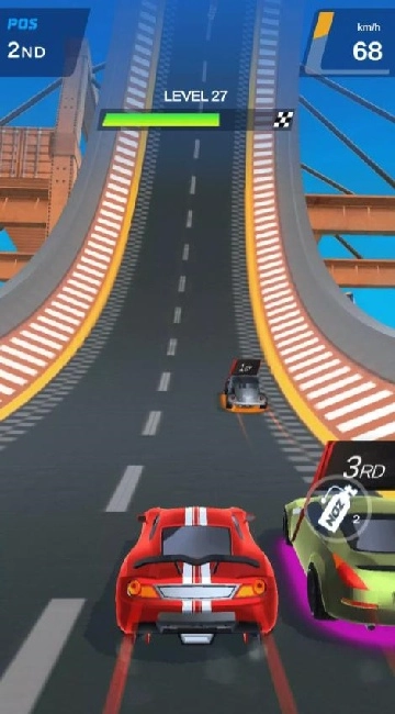 在赛道上超越对手,成为第一名,获取大量声望来解锁更多车型。
