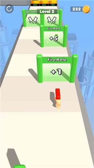 玩家在跑酷过程中需用钞票枪快速射击赛道两侧的物品,击中就能购买该物品并获取相应的金币奖励。
