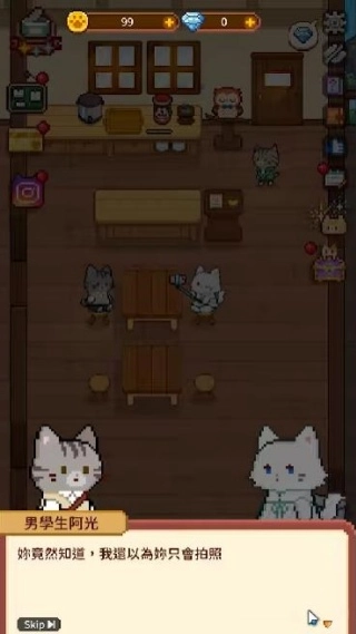 你即将踏入一个满溢温情与梦想的像素天地。故事的序幕由一位年迈的虎斑灰猫爷爷拉开,他把毕生的梦想交付给了一只年幼的橘白奶猫。而现在,这份梦想在你手中得以延续,你将成为一家全天候营业的咖啡馆的主人。形形色色的猫咪顾客会走进这家店,它们有的怀揣喜悦,有的带着忧伤,每一只猫咪都有着独属于自己的心事与故事。