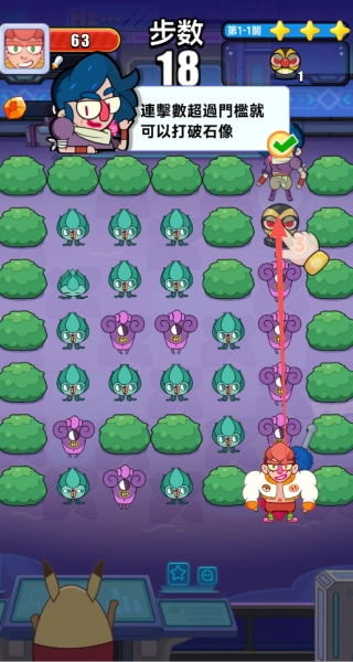 关卡里会有石像之类的障碍物,你得先通过消除相邻的怪物来攻击并清理掉这些石像,这样才能继续前进。